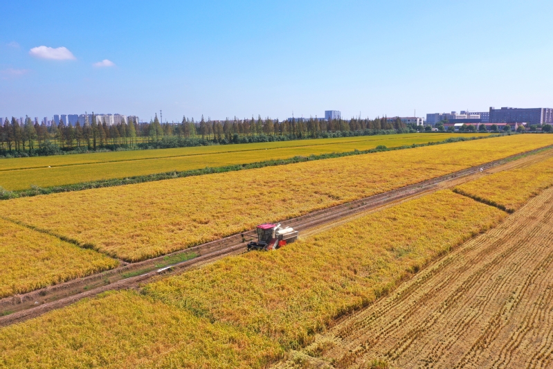 10月10日,江心沙農場100余畝“低GI”功能性水稻喜迎豐收,農機手駕駛收割機、運糧車來回穿梭,密切配合,確保顆粒歸倉。