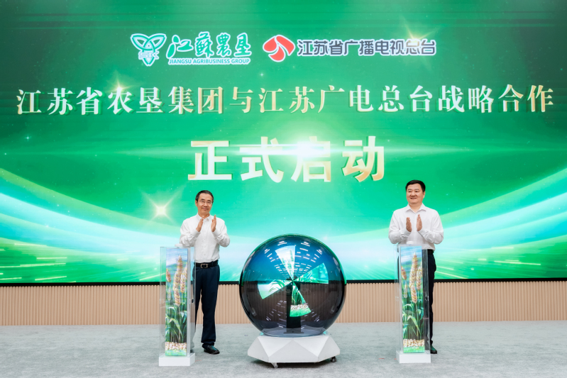 9月30日上午,江蘇省農墾集團有限公司與江蘇省廣播電視總臺在南京舉行戰略合作簽約儀式,并共同發布“蘇墾優品”品牌。江蘇省農墾集團黨委書記、董事長吳本輝,黨委副書記朱浩,黨委委員、副總經理鄧國新;江蘇廣電總臺黨委書記、臺長、集團董事長葛萊,黨委副書記、副臺長、集團總經理陸峰,黨委委員、副臺長、集團副總經理季建南等領導出席活動。葛萊在致辭中表示,江蘇廣電總臺與江蘇省農墾集團兩大省屬國有企業強強聯手,是貫徹總書記重大要求的自覺行動,也是落實省委省政府決策部署、賦能江蘇現代農業發展的生動實踐。雙方將聯合宣傳江蘇農業發展成就,合力講好江蘇農墾品牌故事,攜手探索“視聽+農業”產業模式,為江蘇農業現代化注入新的強勁動能。吳本輝在致辭中表示江蘇農墾歷經73年發展,已成為以現代農業為核心,一二三產業融合發展的省屬大型國有企業。“蘇墾優品”作為今年集團重點打造的平臺品牌,堅持綠色、安全、高品質的標準,致力于滿足消費者對健康餐桌和美好生活的需求。期待雙方緊密協同、資源互補,共同打造全國領先的農業品牌建設典范,助力江蘇品牌強省戰略實施,為推動江蘇農業現代化走在全國前列貢獻品牌力量。發布會上,朱浩詳細介紹了“蘇