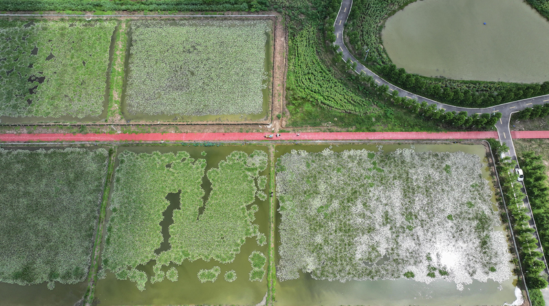在云臺農場云水灣濕地公園,40畝荷塘甲魚、60畝蟹蝦以及80畝魚塘相映成趣,通過“一水多用、種養循環”的生態模式,既守護了濕地生機,更孕育出獨具特色的休閑垂釣新業態。