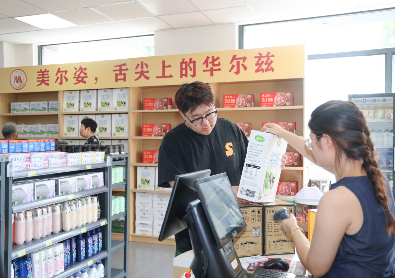 今年以來,新洋農場營銷板塊交出亮眼成績單。農場1至7月營銷板塊實現創收518.18萬元,完成全年預算的195.54%,較上年同期增加354.46萬元。其中,7月單月營銷創收突破百萬元。圖為農場優鮮農產品超市開展線下促銷活動。