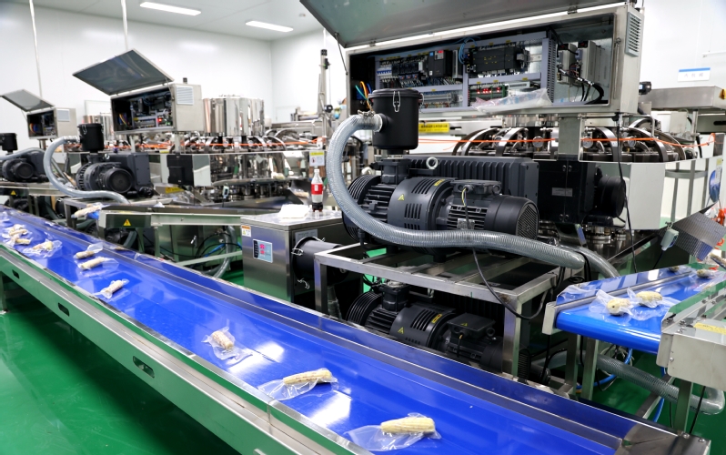 走進黃海農場鮮食玉米生產加工車間,一片繁忙景象,一根根色澤鮮亮、顆粒飽滿的玉米“搭乘”全自動流水線,依次完成挑選、剝皮、360度清洗、真空鎖鮮、高溫蒸煮、風干、入庫冷藏等工序。經過180個日夜的準備,黃海農場鮮食玉米全自動生產線正式投產。