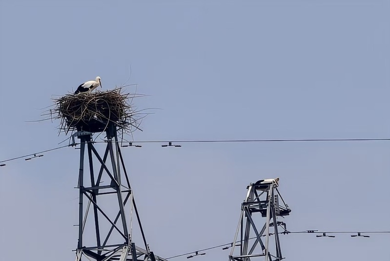 在白馬湖農場光伏項目基地附近30多米高的輸電鐵塔頂端,有著“鳥中國寶”之稱的國家一級重點保護野生動物東方白鸛,正站在鳥巢中精心照顧兩只幼鳥,這和諧的一幕不僅吸引了附近居民和鳥類愛好者的關注,也成了白馬湖農場生態環境持續改善的有力見證。